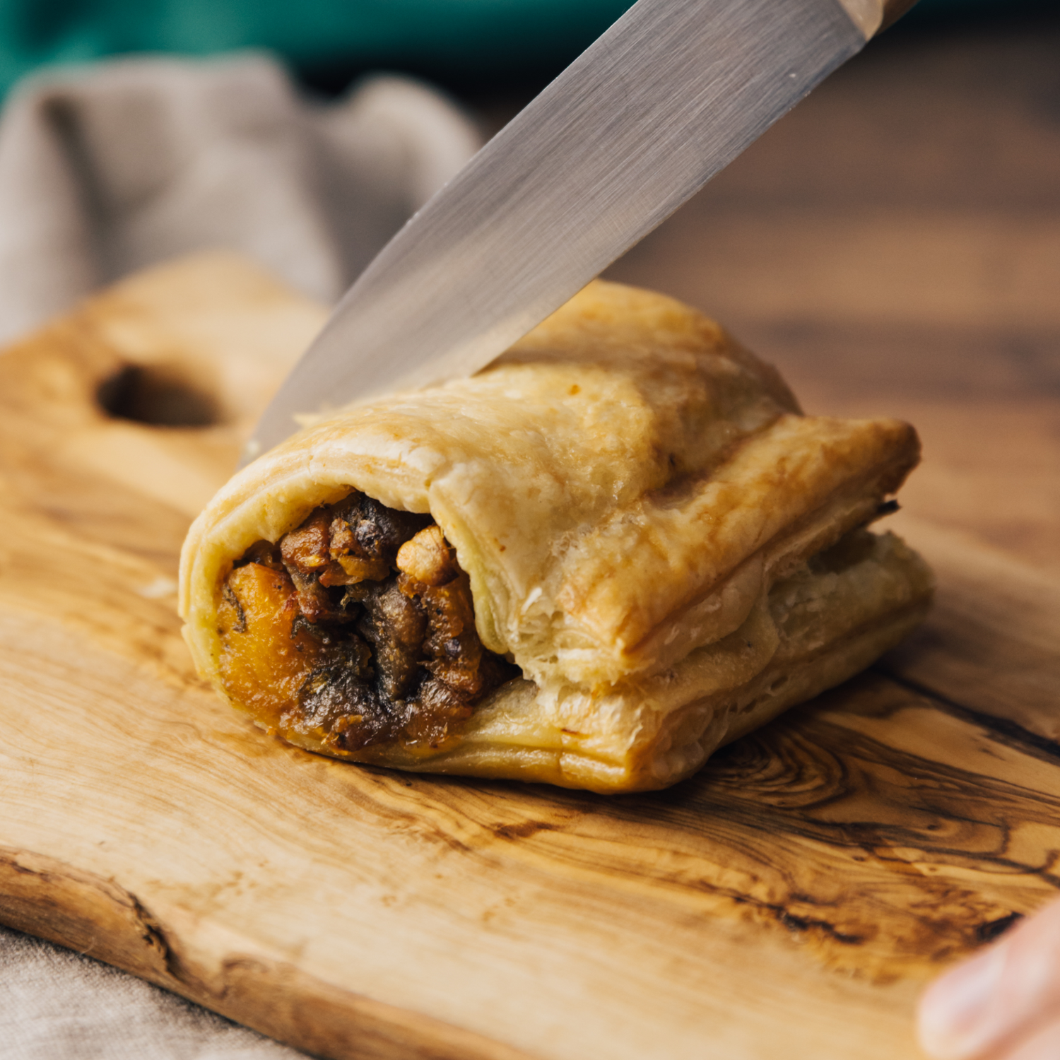 Our Veggie Festive Roll is a hearty seasonal treat, featuring a golden, flaky pastry filled with a delicious vegetarian filling. Perfect for sharing at holiday gatherings or enjoying as a warming festive snack.